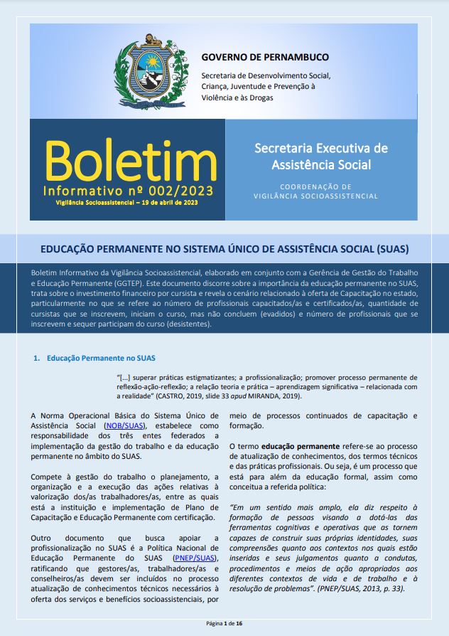 JANEIRO Boletim Informativo nº 03/2023 Serviço de Proteção em Situações de Calamidades Públicas e de Emergências Ler mais