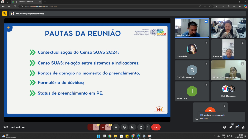 Reunião de Apoio Técnico aos municípios Sobre o CENSO SUAS 2024