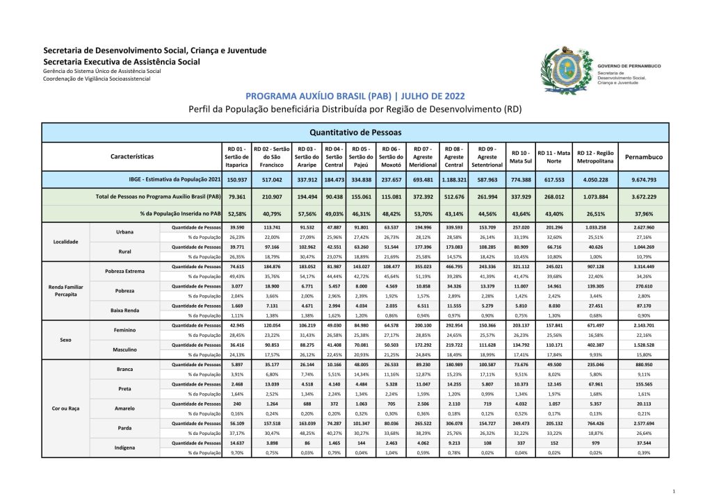 PROGRAMA AUXÍLIO BRASIL (PAB) | JULHO DE 2022