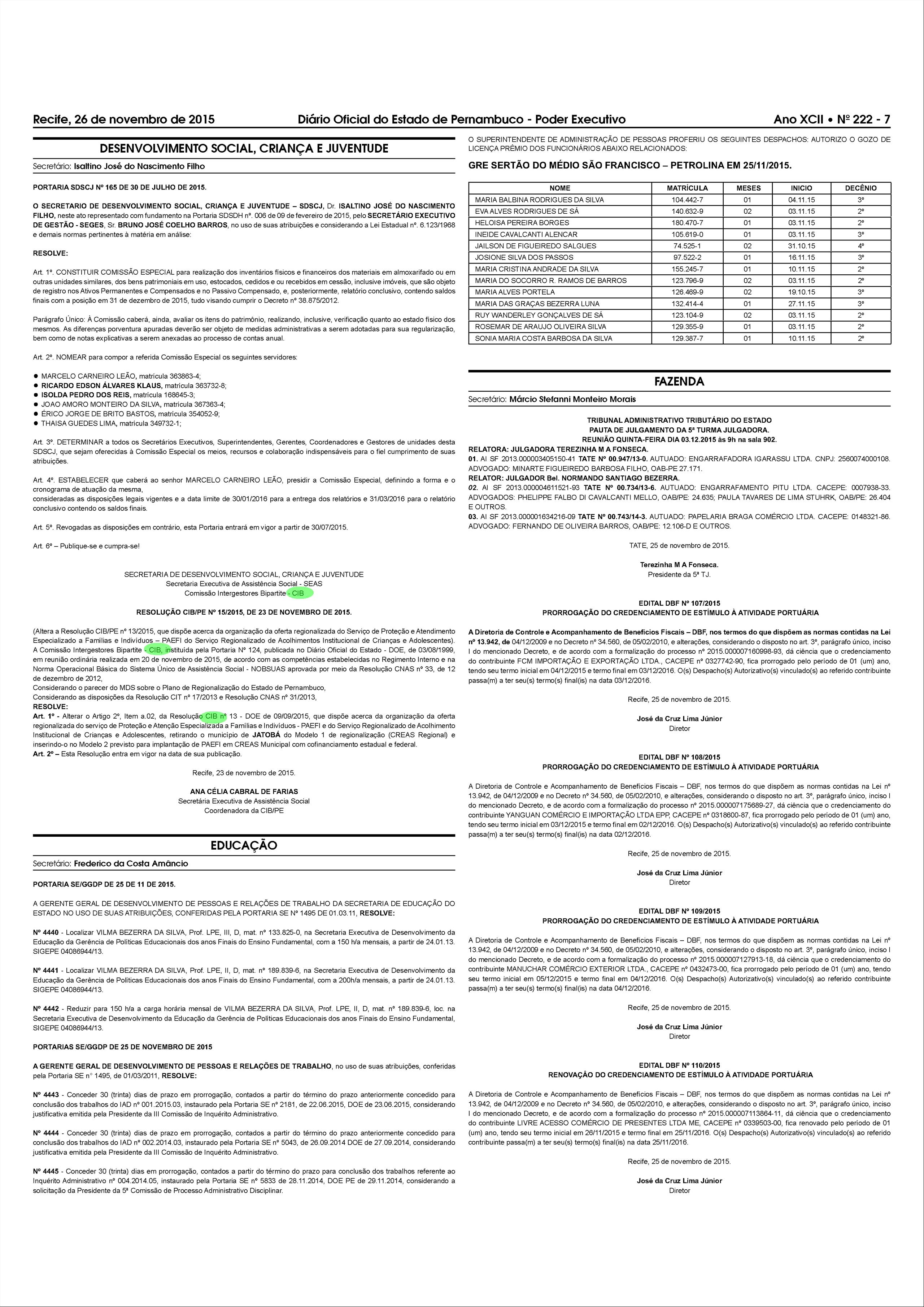 Resoluções da CIB/PE – 2015