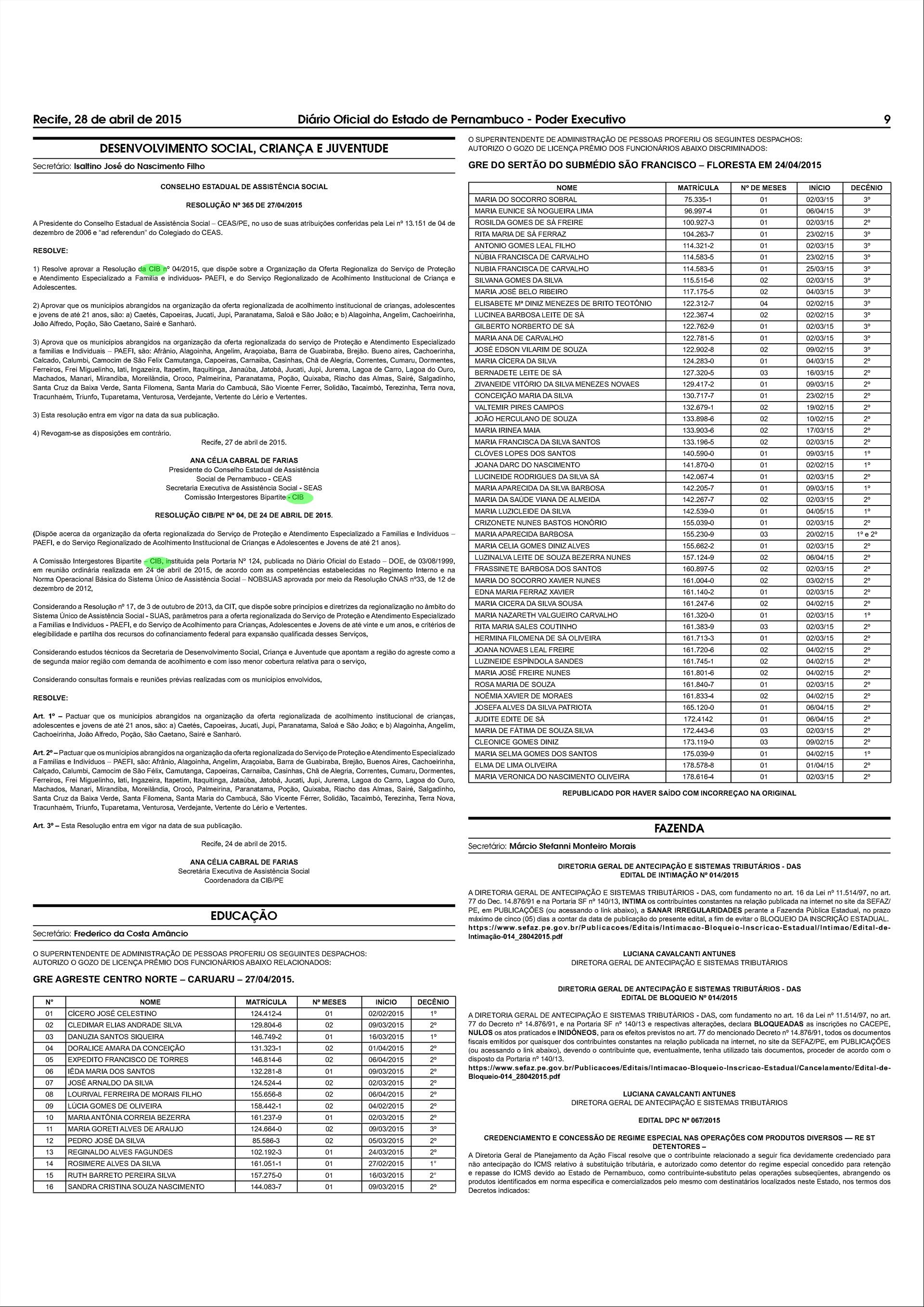 - Resolução CIB/PE nº 001, de 03 de março de 2015