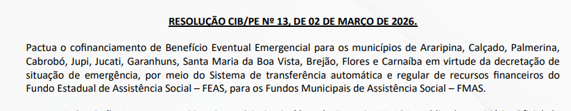 RESOLUÇÃO CIB/PE Nº 13, DE 02 DE MARÇO DE 2026.